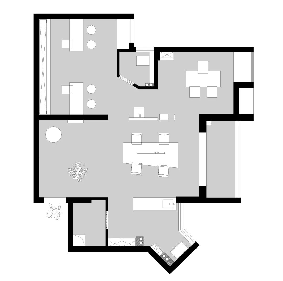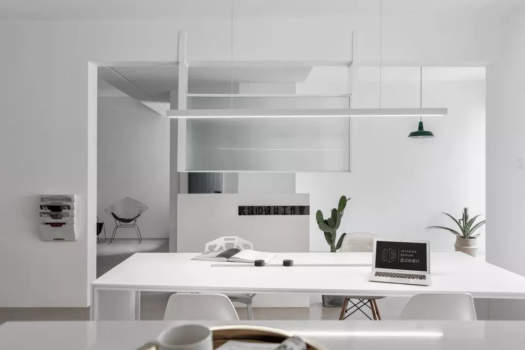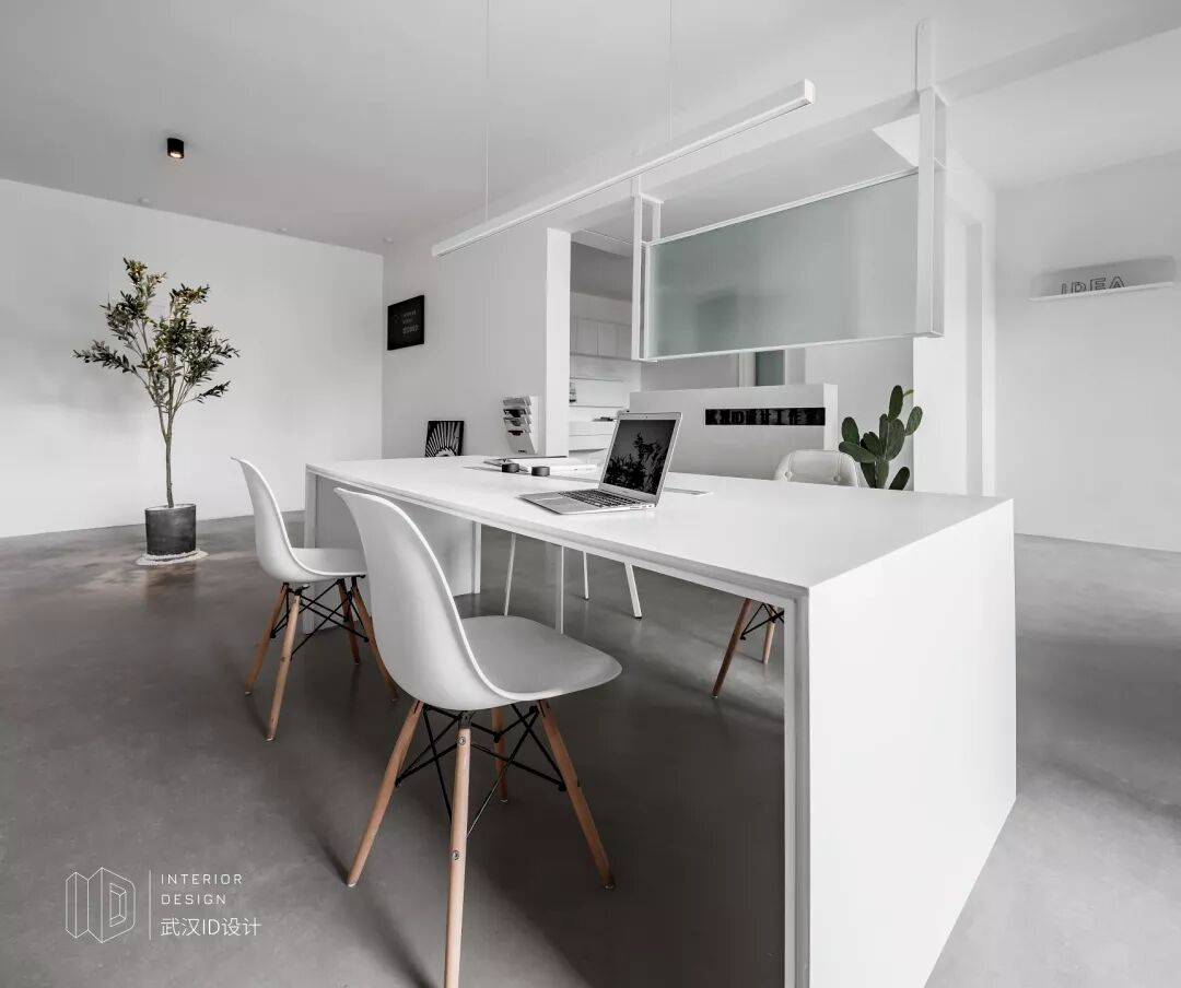 本案是ID设计的办公室,在有限的空间里,设计了5个功能区。分别是办公区、谈单区、软装区、茶水区和休息区。区域之间无遮挡,增加了空间的延申感。
